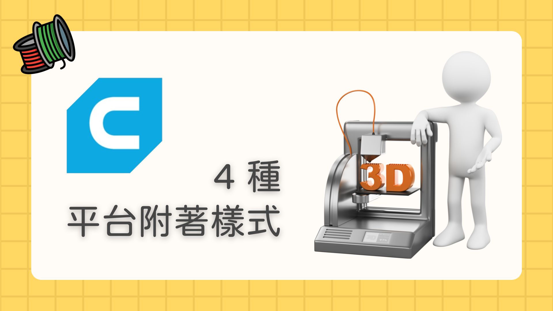 使用 Ultimaker Cura 4.2.1 版本,說明 4 種平台附著樣式 : 1. 外圍…