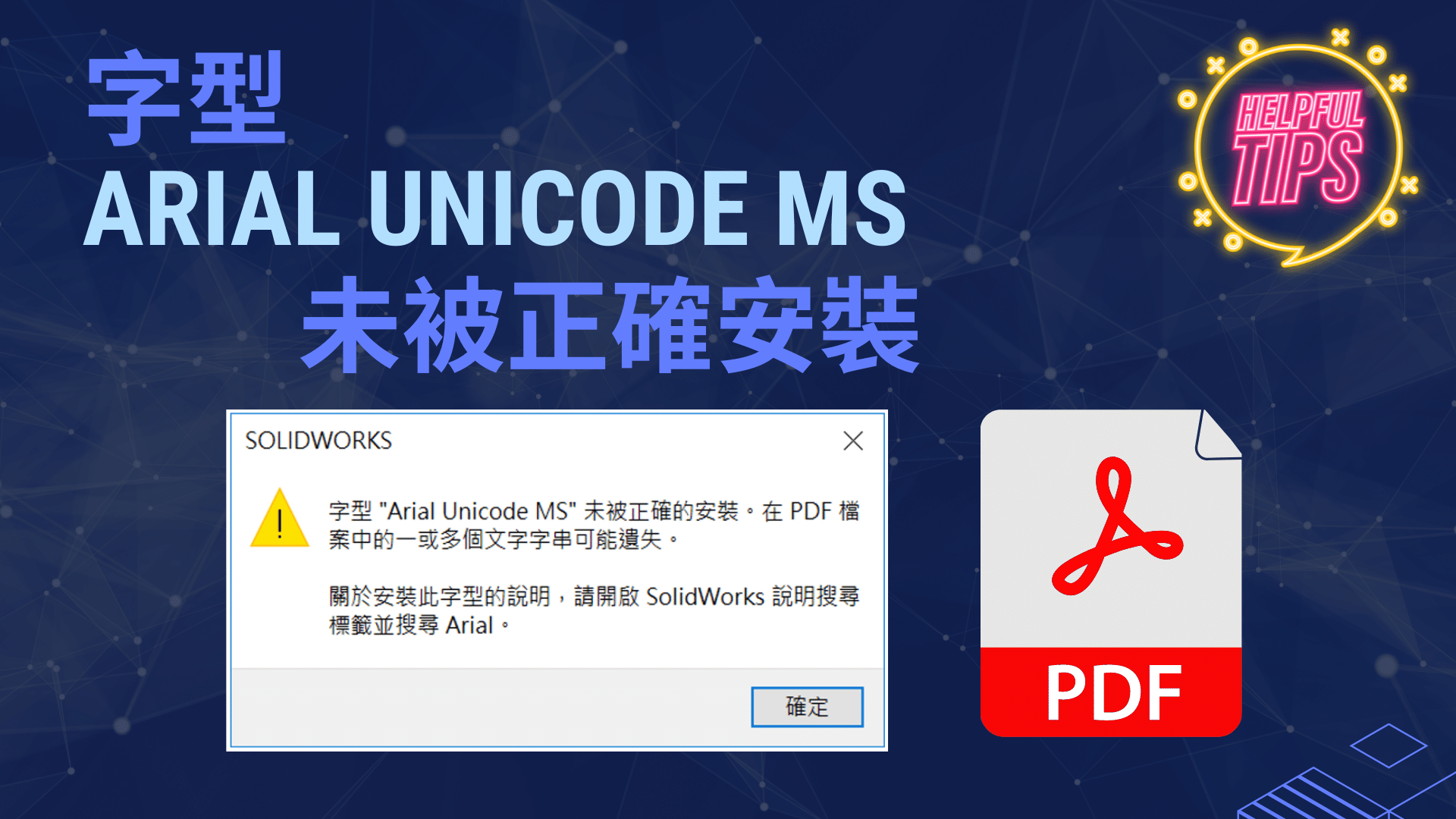 將 SolidWorks 工程圖另存 PDF 過程,顯示字型 “Arial Unicode…