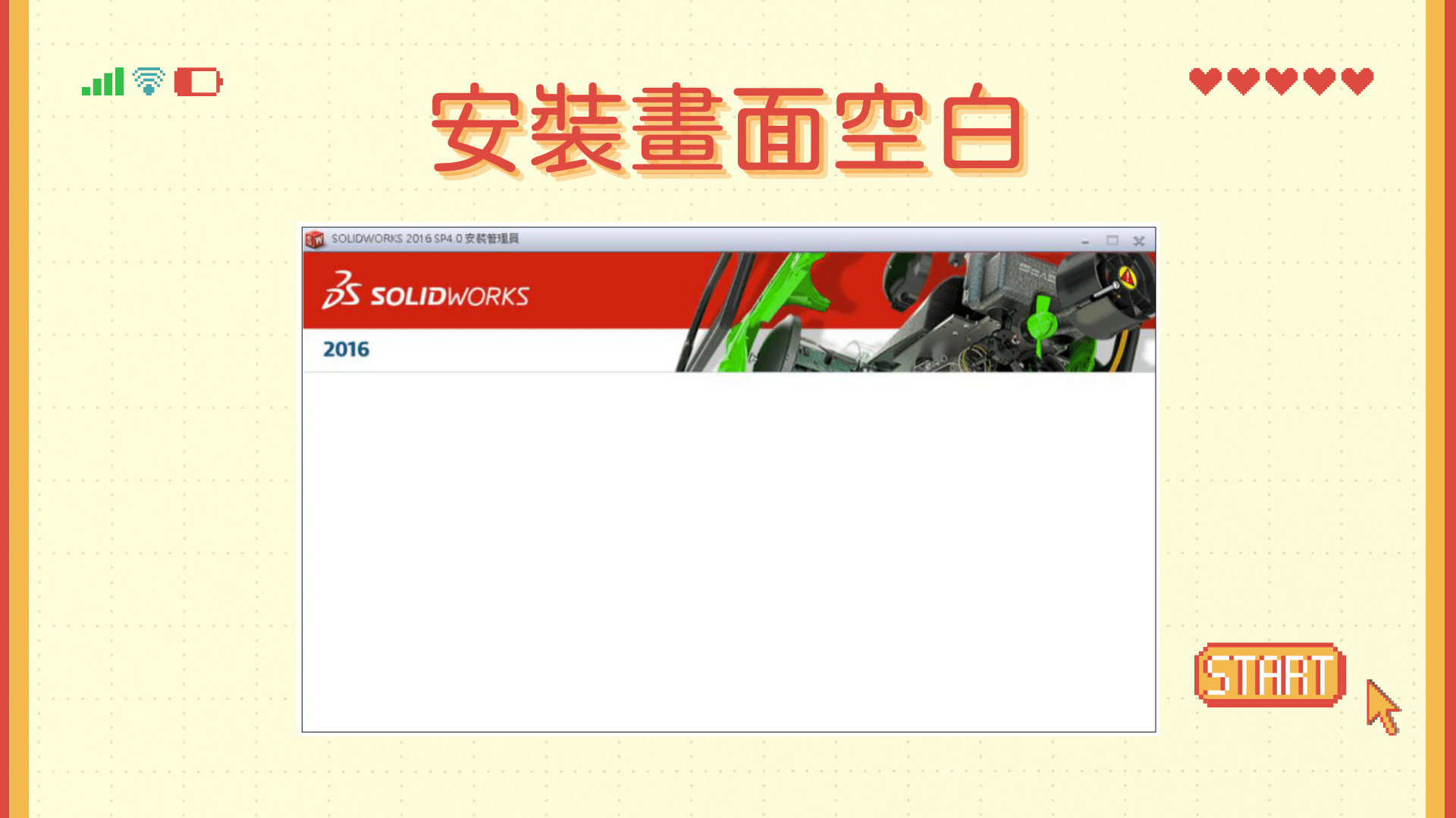 執行安裝過程,在安裝管理員畫面上方顯示版本資訊,下方為空白,沒有…